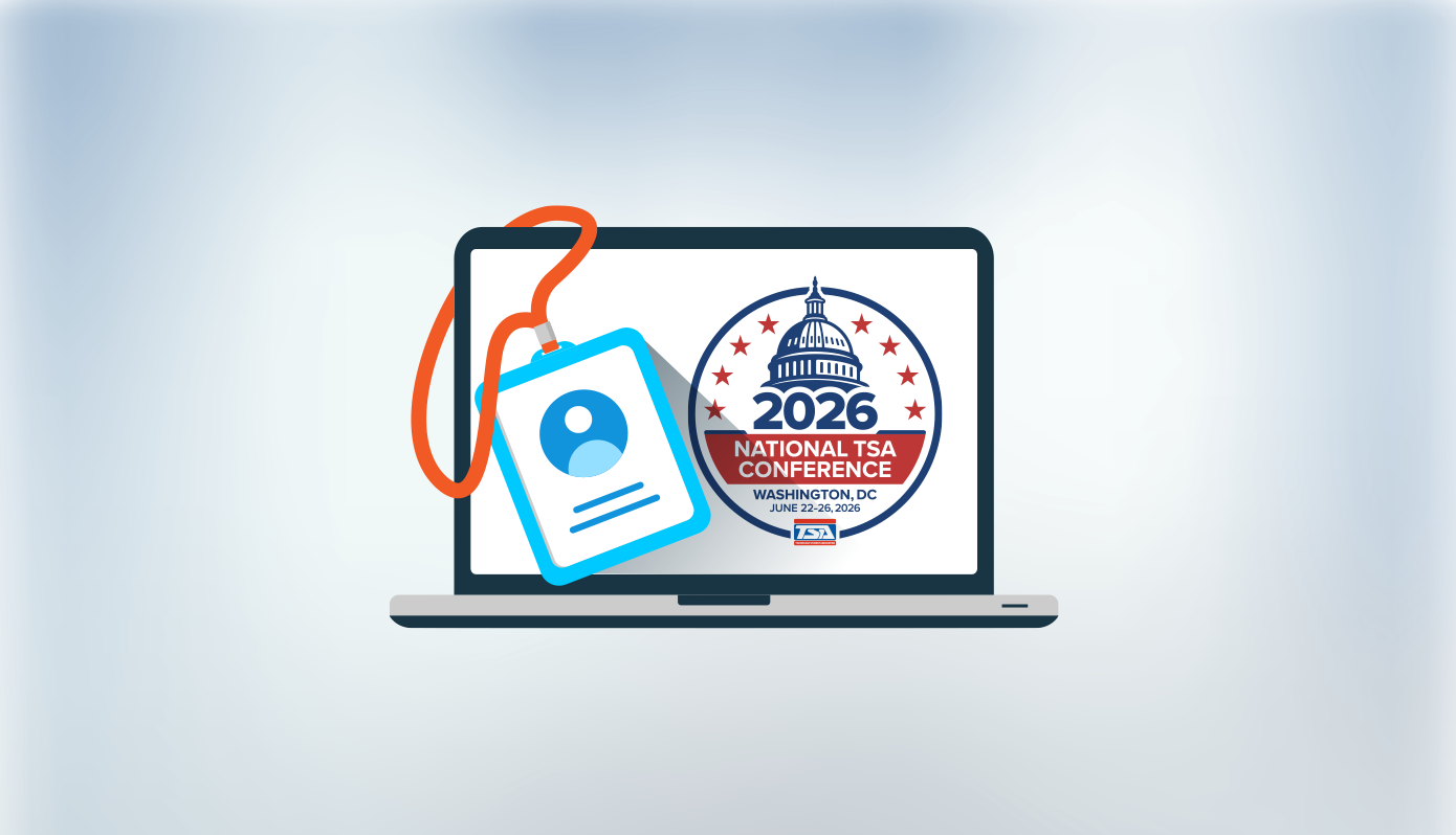 Chapter advisors (middle and high school) must pre-register their chapter attendees for the conference. Complimentary registration is granted only to national TSA officers, honorary life members, national TSA staff, selected invited guests (keynote speaker, government officials, etc.) and approved national TSA Competition Regulations Committee (CRC) individuals.